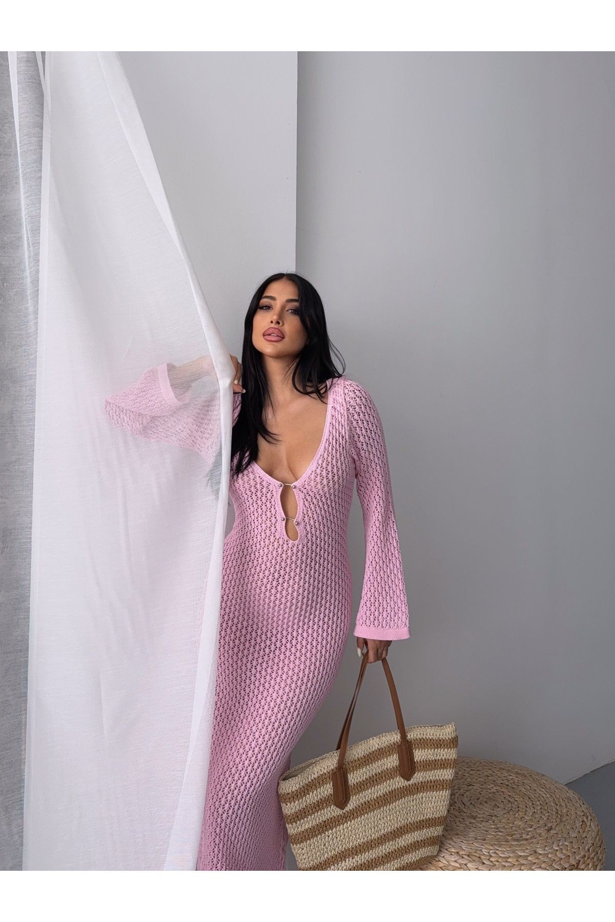 Ajurlu Aksesuarlı Pareo Triko Elbise