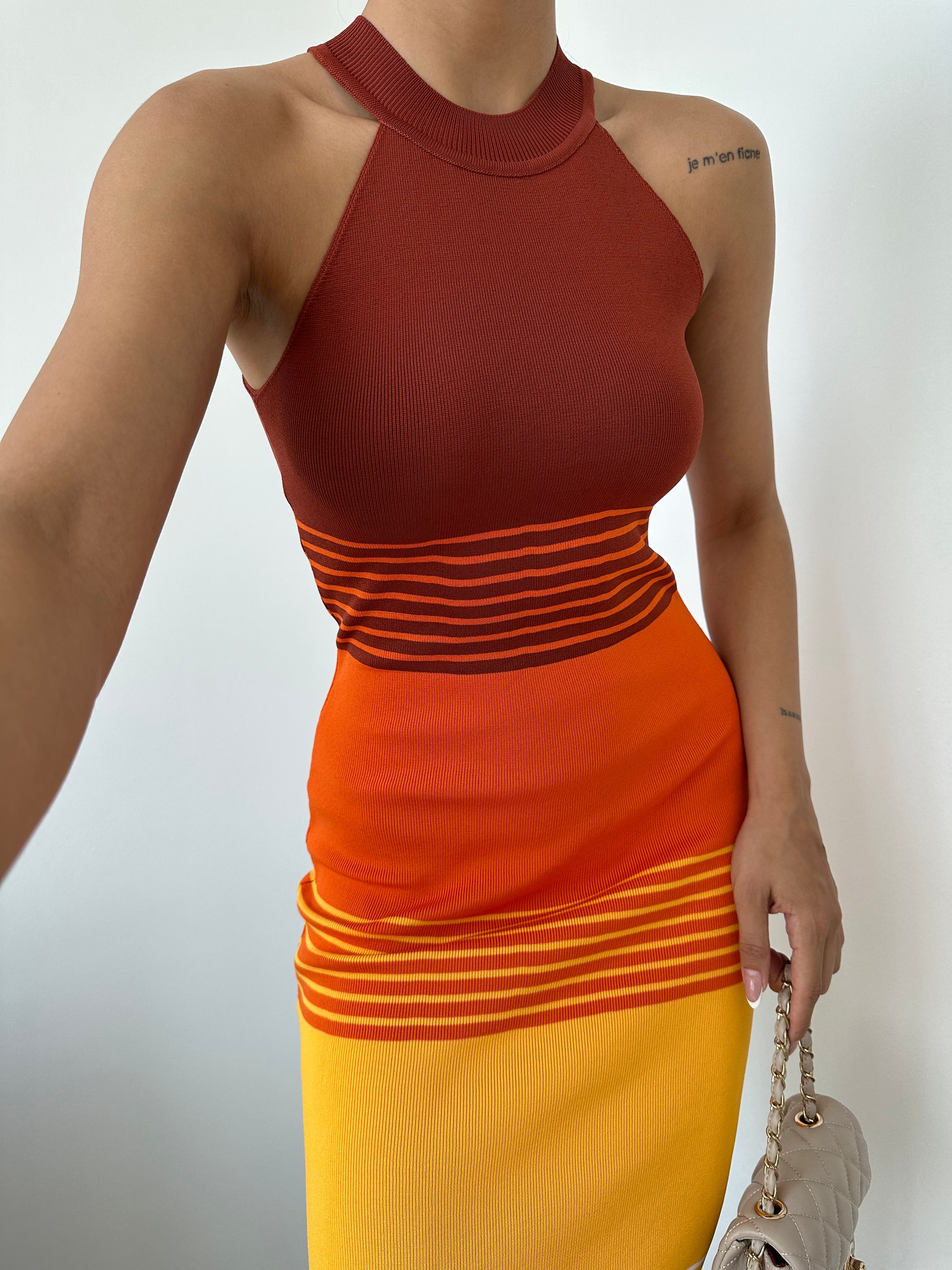 Çok Renkli Halter Yaka Elbise