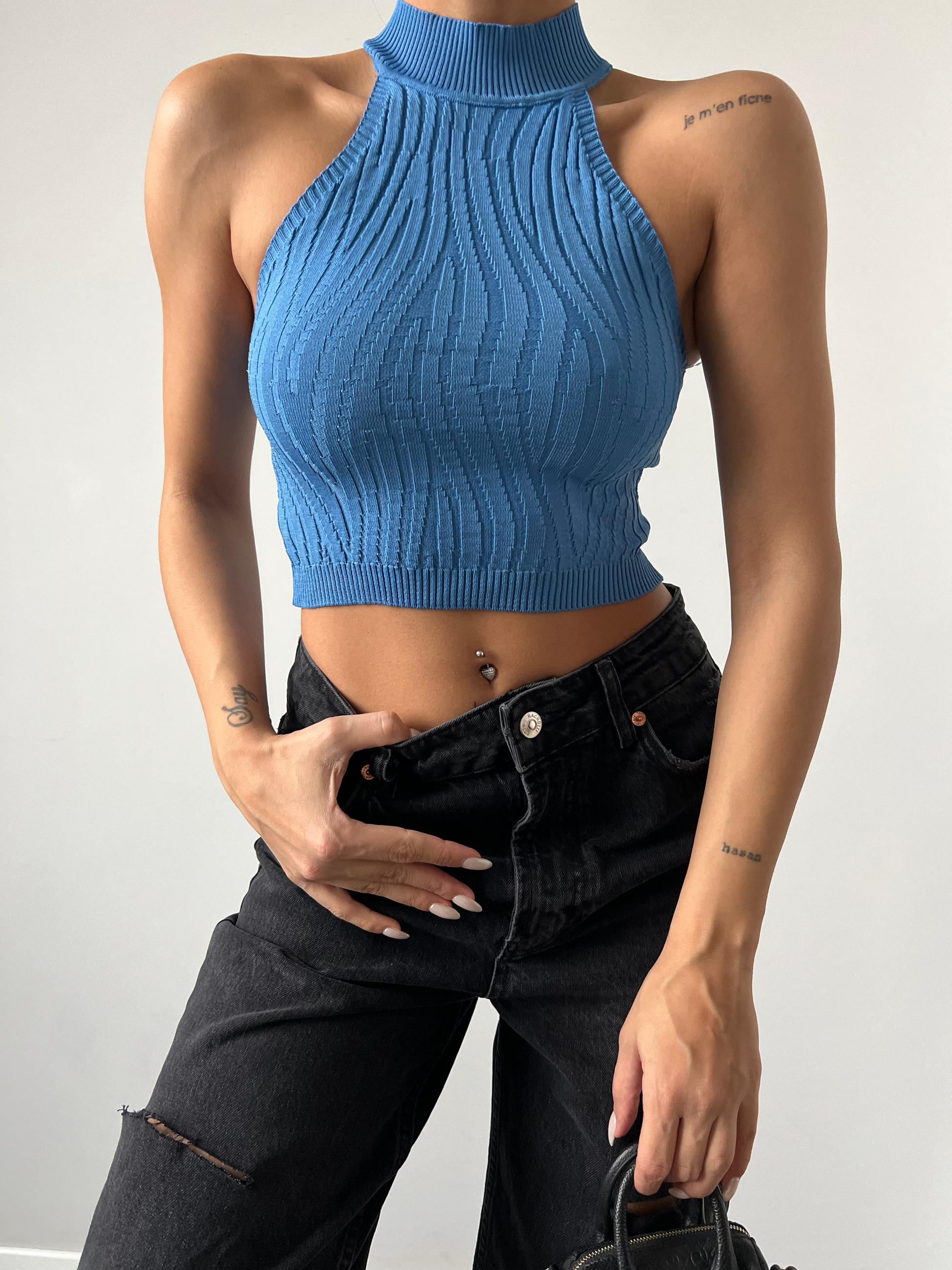 Halter Yaka Zebra Desen Crop Triko Bluz