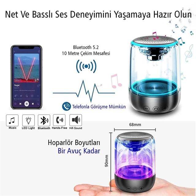 Magicvoice Mv-24695 600 Mah Taşınabilir Rgb Mikrofonlu Aux/tf/bluetooth 3 Watt Hoparlör