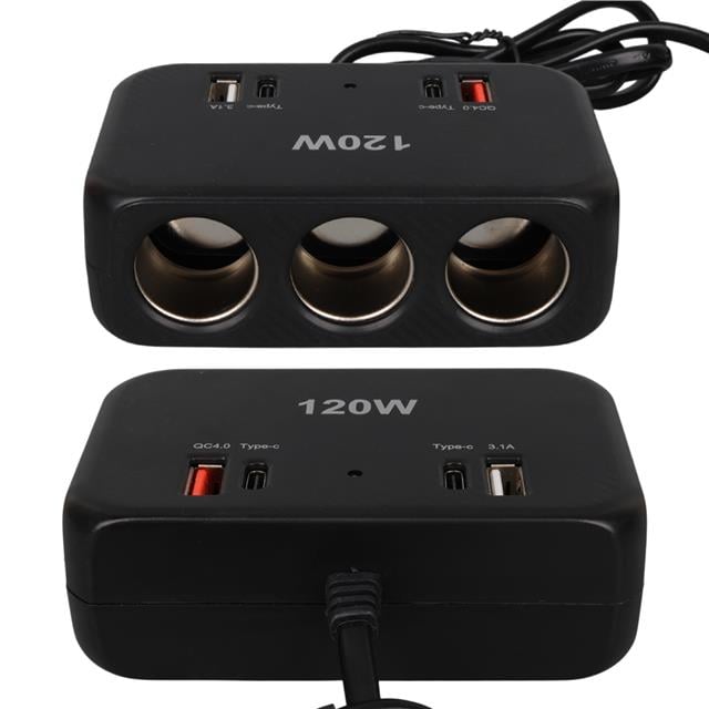 Olesson 1656 12-24v Çift Usb + Çift Type-c 120w 80cm Kablolu 3'lü Araç Çakmak Çoklayıcı