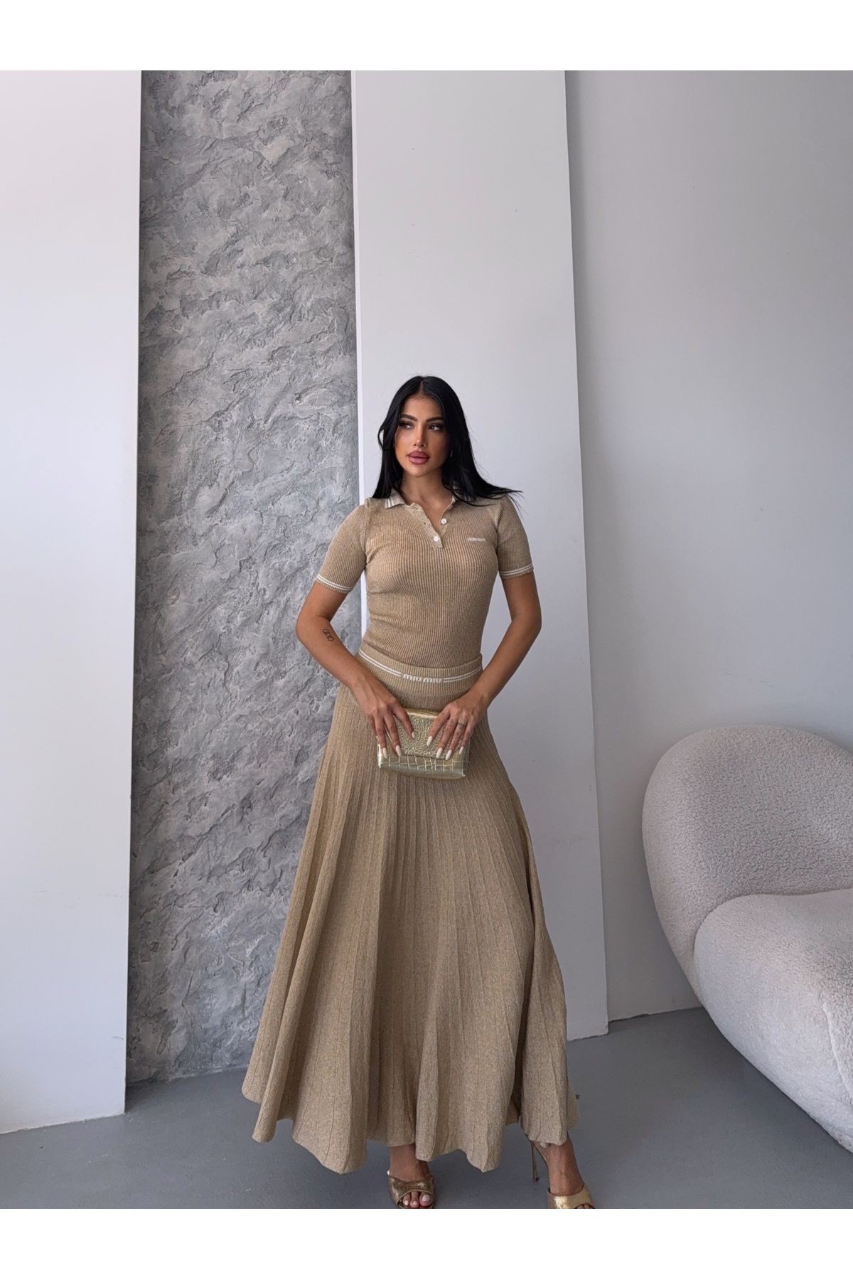 Simli Fitilli Üst Pileli Etek Alt-üst Triko Takım