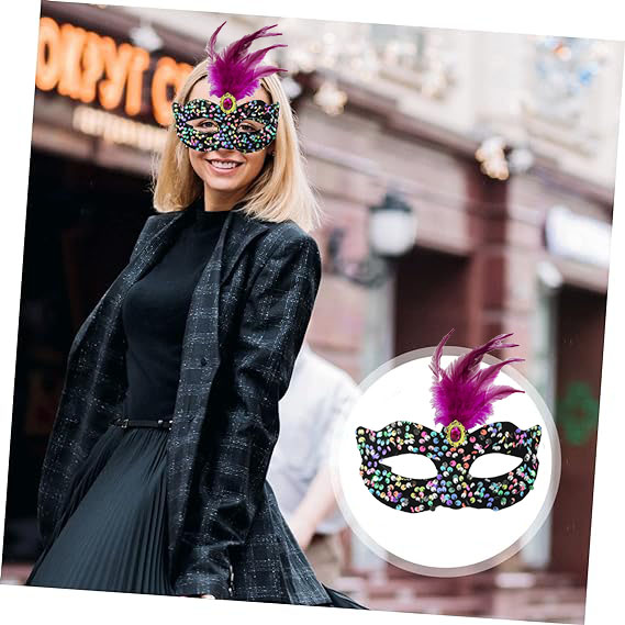 Siyah Kadife Rengarenk Payetli Pembe Parti Maskesi