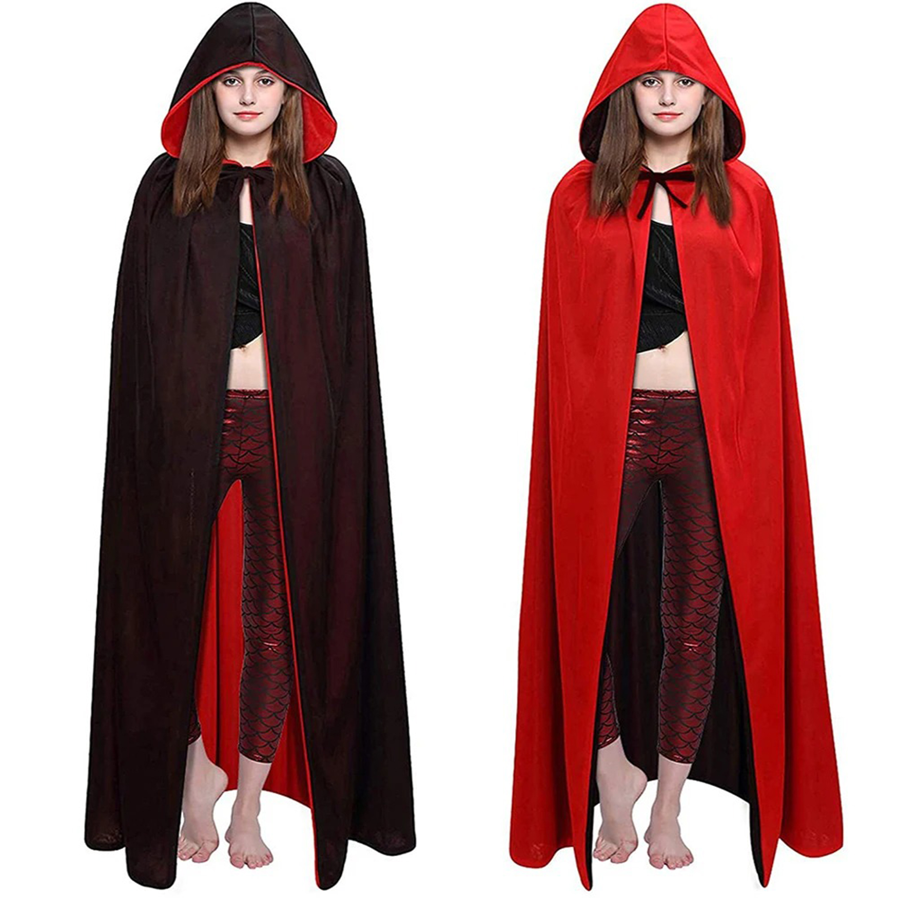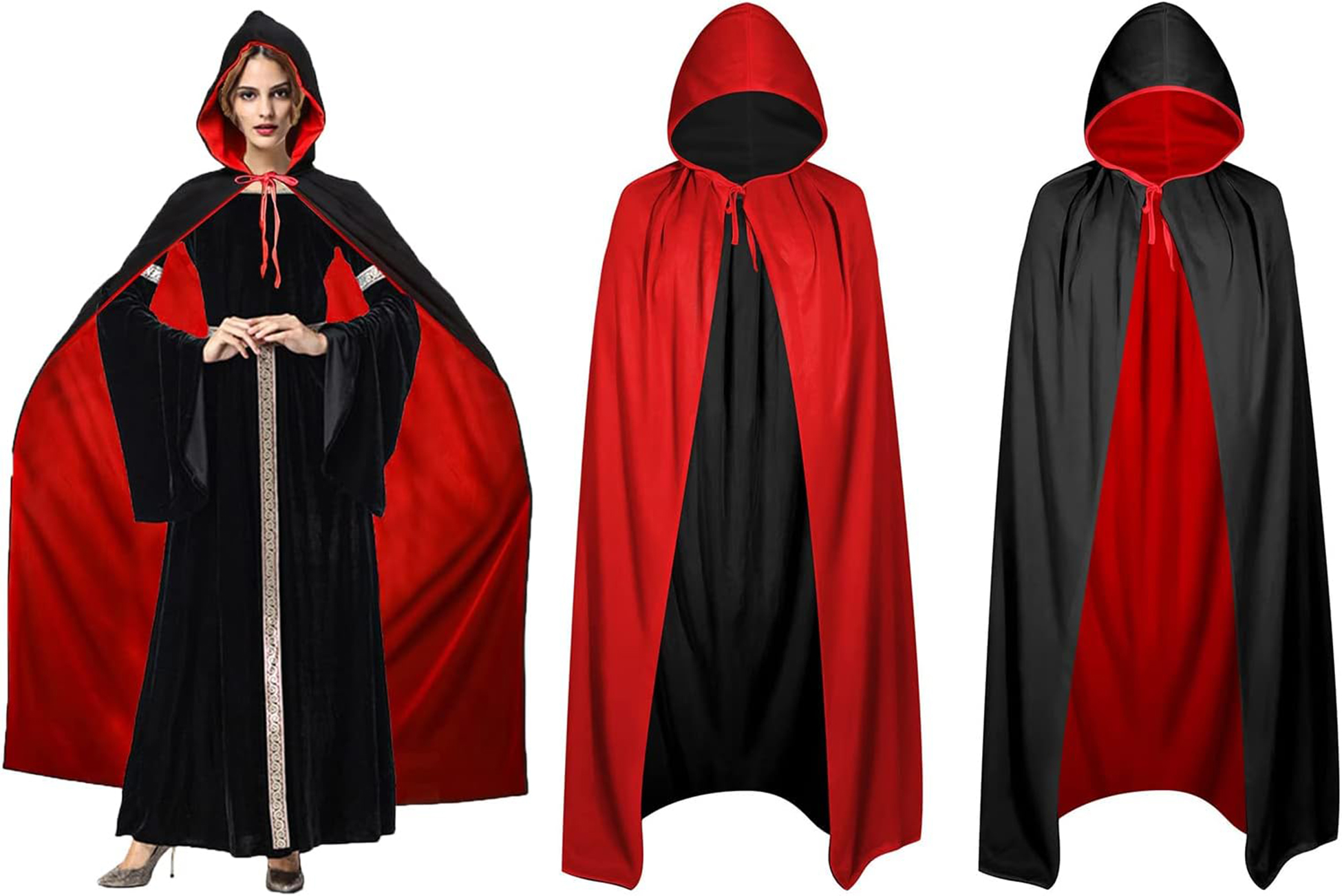 Siyah Kırmızı Çift Taraflı Kapişonlu Pelerin