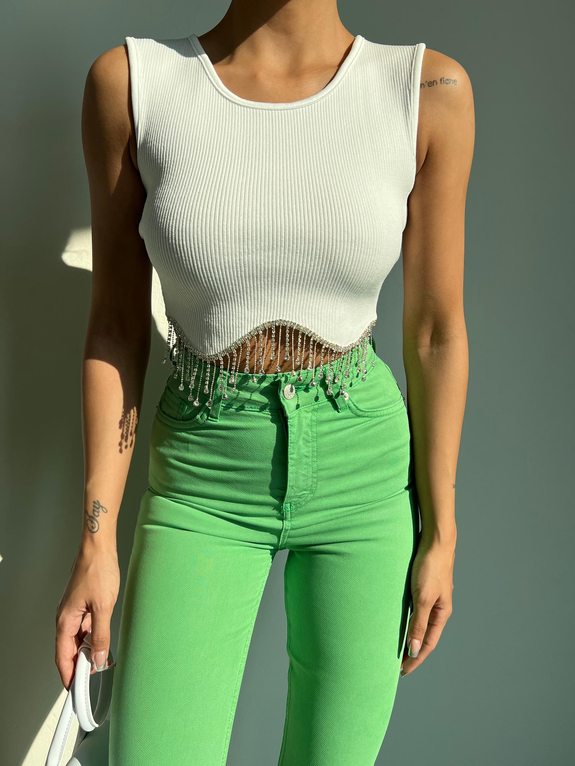 Taş Detaylı Kolsuz Crop Triko Bluz