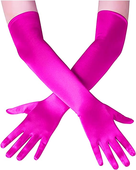 Uzun Boy Ekstra Parlak Saten Eldiven Fuşya Renk